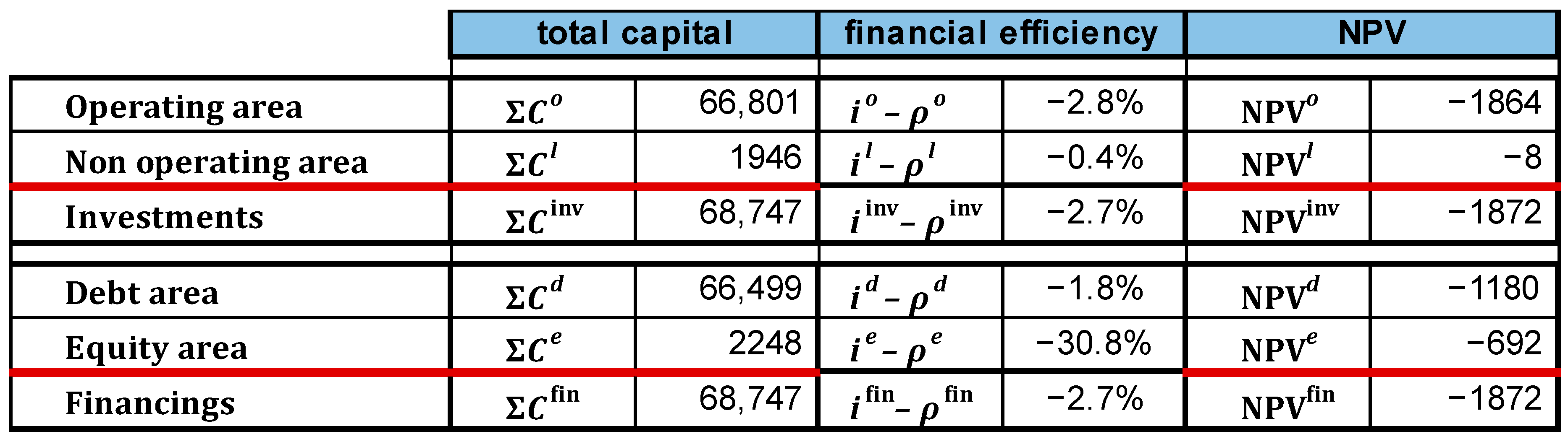 measures financial efficiency across operating, non-operating, debt, and equity areas using consistent metrics such as NPV, residual income, average accounting rates of return;