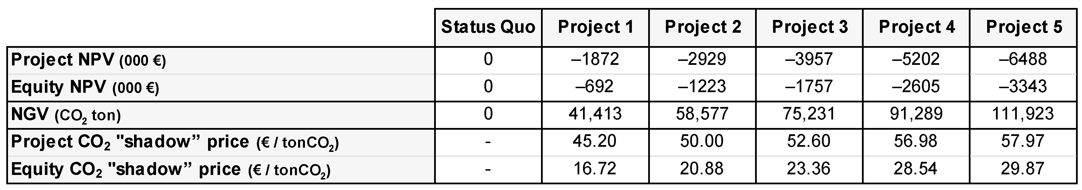 2, the “shadow” price for Project 5 is 57.97 EUR/ton CO
