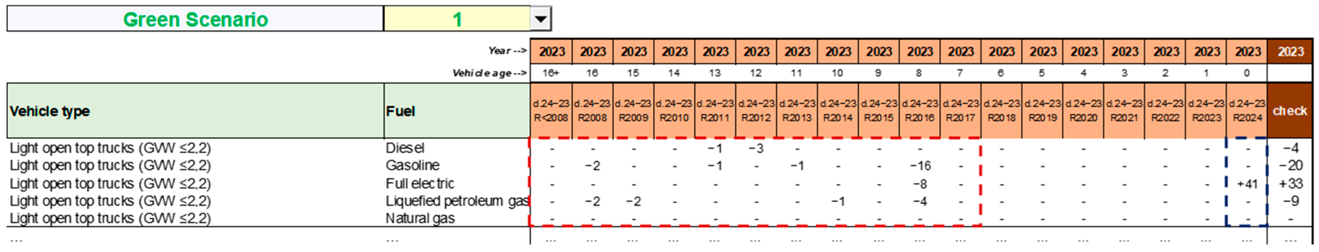 While our model enables integrated technical-economic appraisal of vehicle replacement, several of its assumptions present opportunities for extension. For example, green policy modeling could be made more dynamic by allowing fuel selection policy for each vehicle type to be adjusted multiple times over the planning horizon. Likewise, the model could be enhanced to account for changes in the total number of vehicles per type over time (currently, the model restricts attention on inertial investments, assuming that the number of vehicles per type and in total remains constant, with only fuel composition varying). Additional flexibility could be introduced by incorporating exceptions to the maximum age limit for certain vehicles under specific conditions. Moreover, expanding the model to include broader environmental indicators could help generate more targeted sustainability recommendations. While our analysis focuses on CO2 reduction as an internal metric of environmental performance, future research could extend the framework by considering EU-carbon prices, providing additional insight into the economic significance of environmental impacts and supporting decision-making where carbon pricing is relevant. Specifically, the framework opens the way to analyzing the interaction between internal financial trade-offs and external regulatory pressures. An insightful extension would be to incorporate an explicit carbon price (e.g., mirroring the EU ETS) as a key model input. This would dynamically reshape the Net Value Curve. However, the net effect, resulting from a trade-off between increased operational costs and the relative financial advantage of a reduced compliance burden for lower emissions, cannot be determined a priori. Quantifying this effect and identifying the carbon price threshold at which the green transition becomes NPV-positive would provide critical insights for strategic planning under evolving regulatory scenarios.