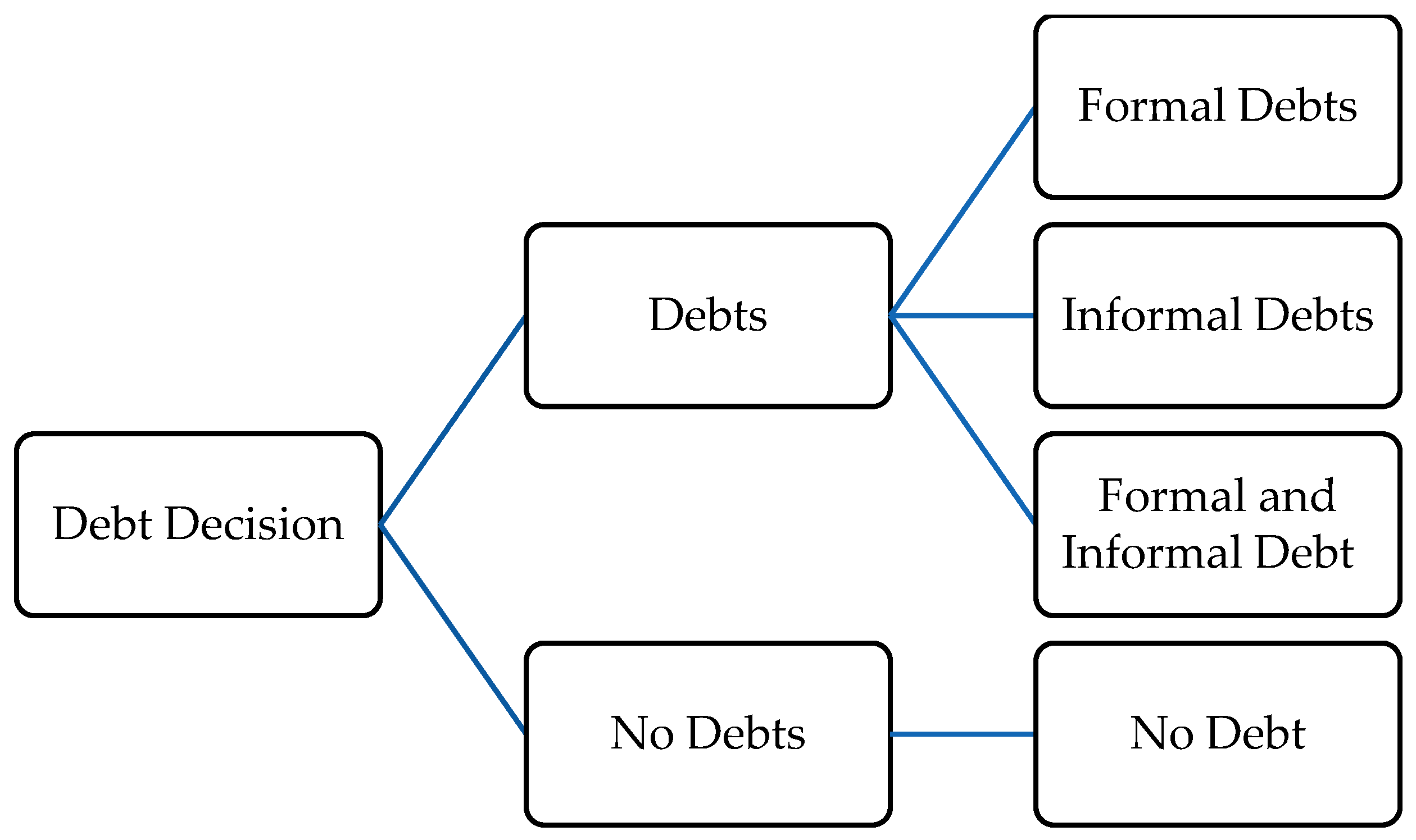 1 Because the survey was conducted in the aftermath of the COVID-19 pandemic, borrowing behaviors should be interpreted with caution, as household debt levels may reflect temporary financial stress in addition to longer-term patterns. Nevertheless, the dataset provides a rare opportunity to analyze both formal and informal borrowing decisions within a nationally representative sample.