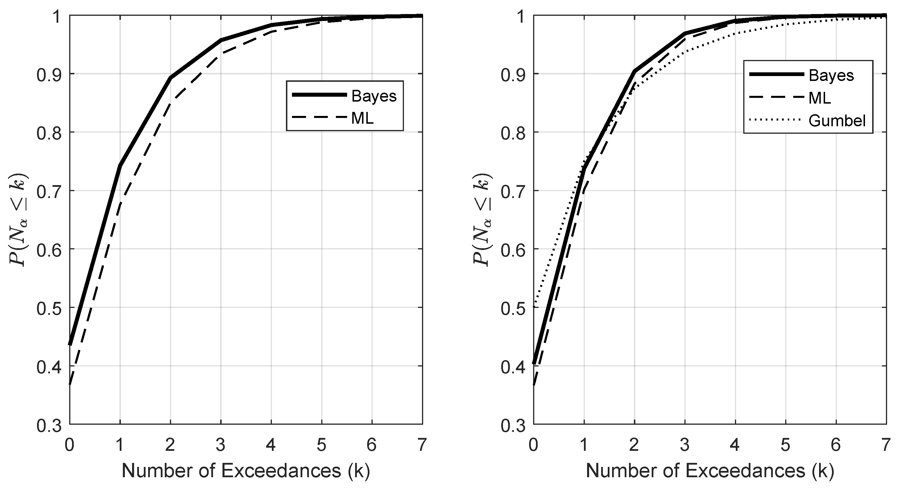 - Gumbel, E. J., & von Schelling, H. (1950). The distribution of the number of exceedances. The Annals of Mathematical Statistics, 21(2), 247–262. [Google Scholar] [CrossRef]