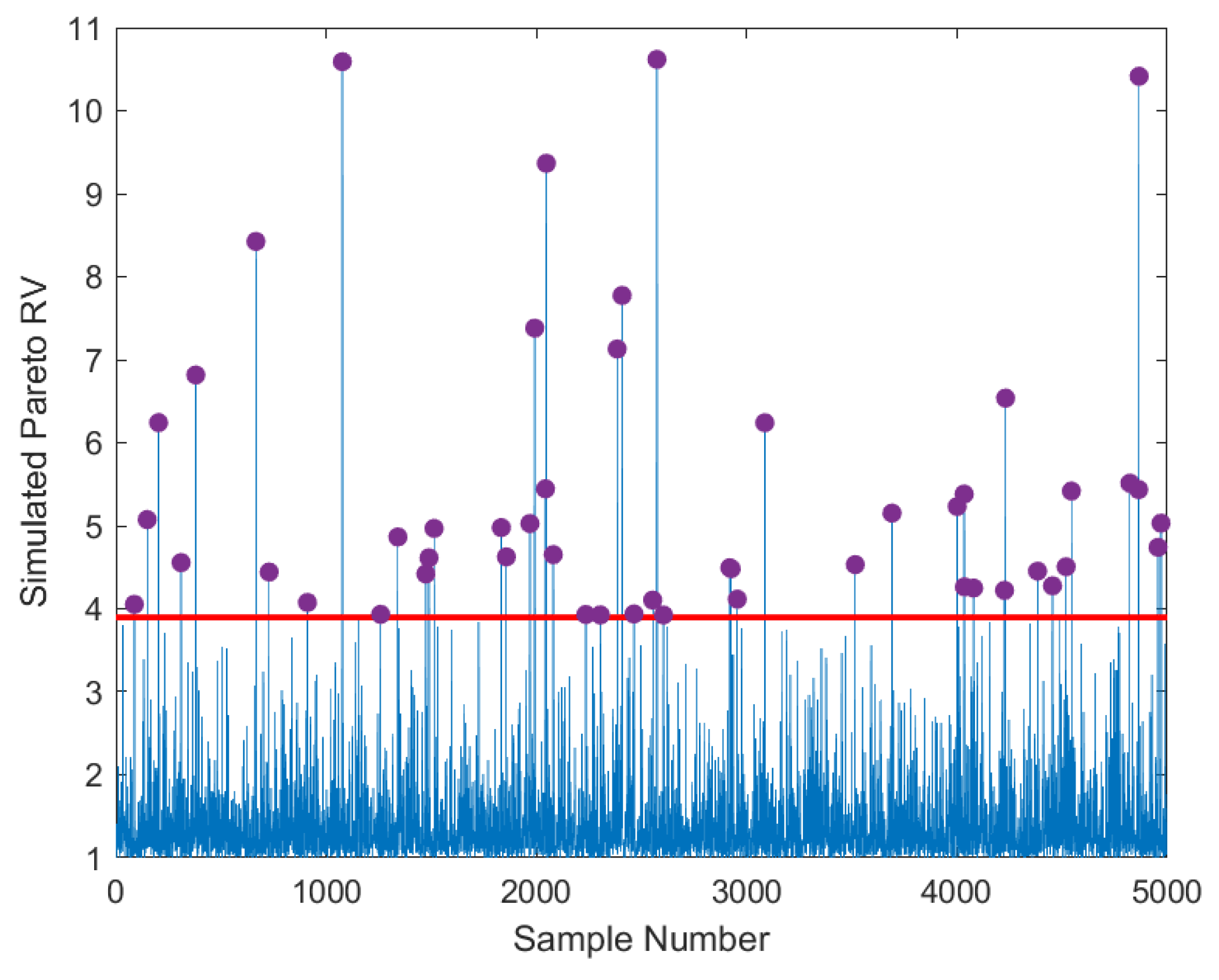- Johnston, D. E., & Djurić, P. M. (2021, June 6–11). Baysian estimation of a tail-index with marginalized threshold. ICASSP 2021 (pp. 5569–5573), Toronto, ON, Canada. [Google Scholar]