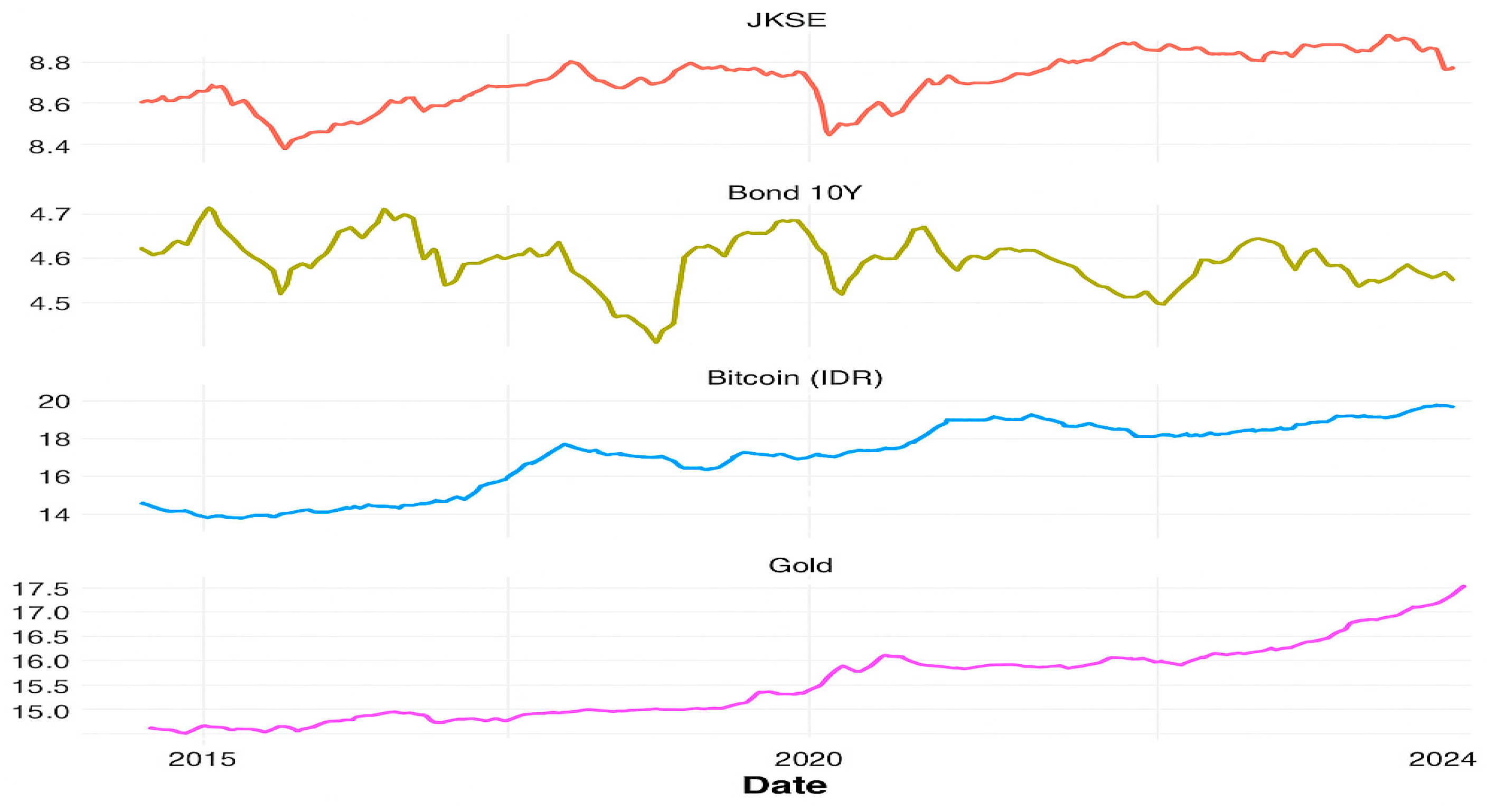| JKSE | GOLD | BOND | BTC | SBI | EXC | INF | |