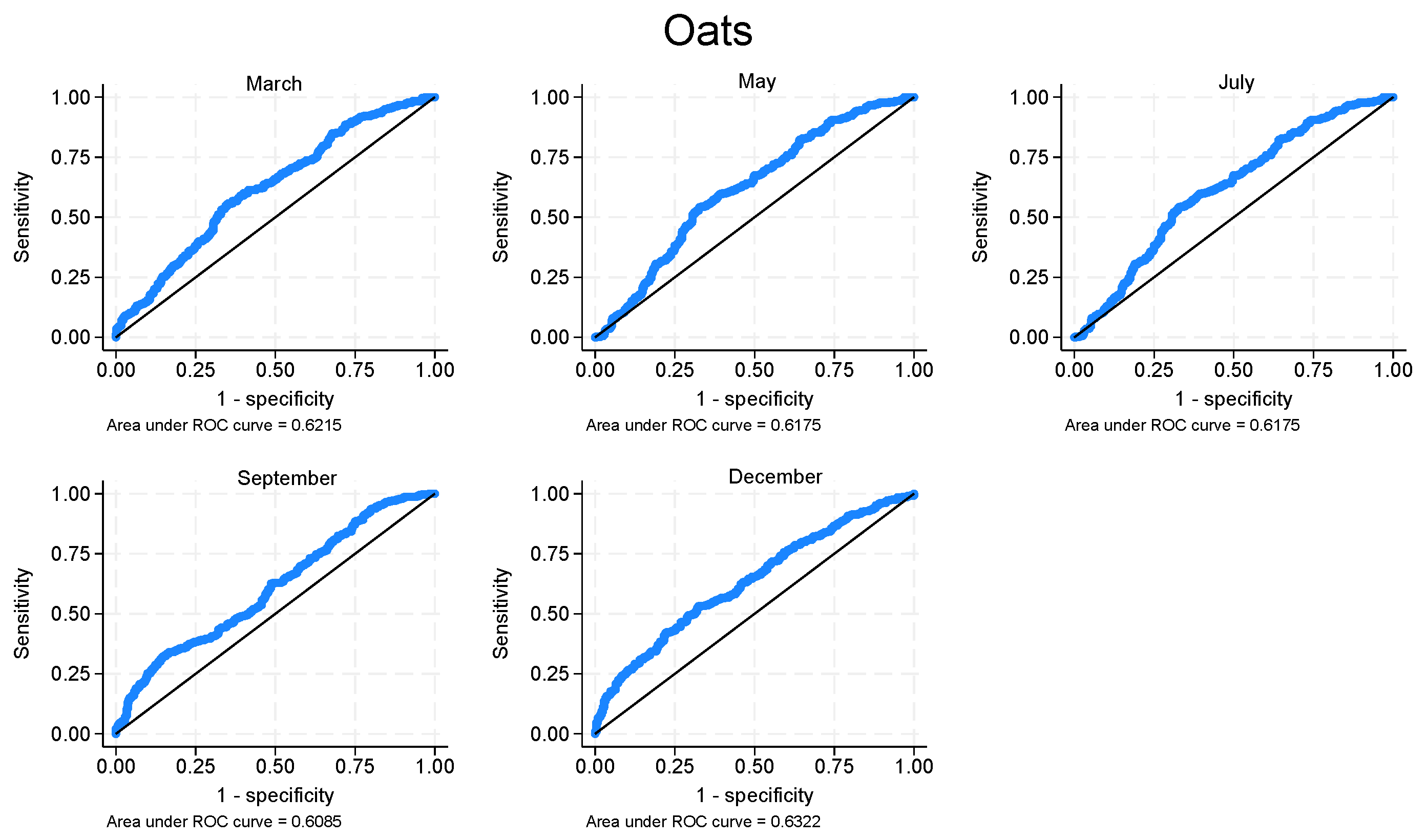 Oats—Area under the ROC curve. Source: Authors’ elaboration from BarChart database.