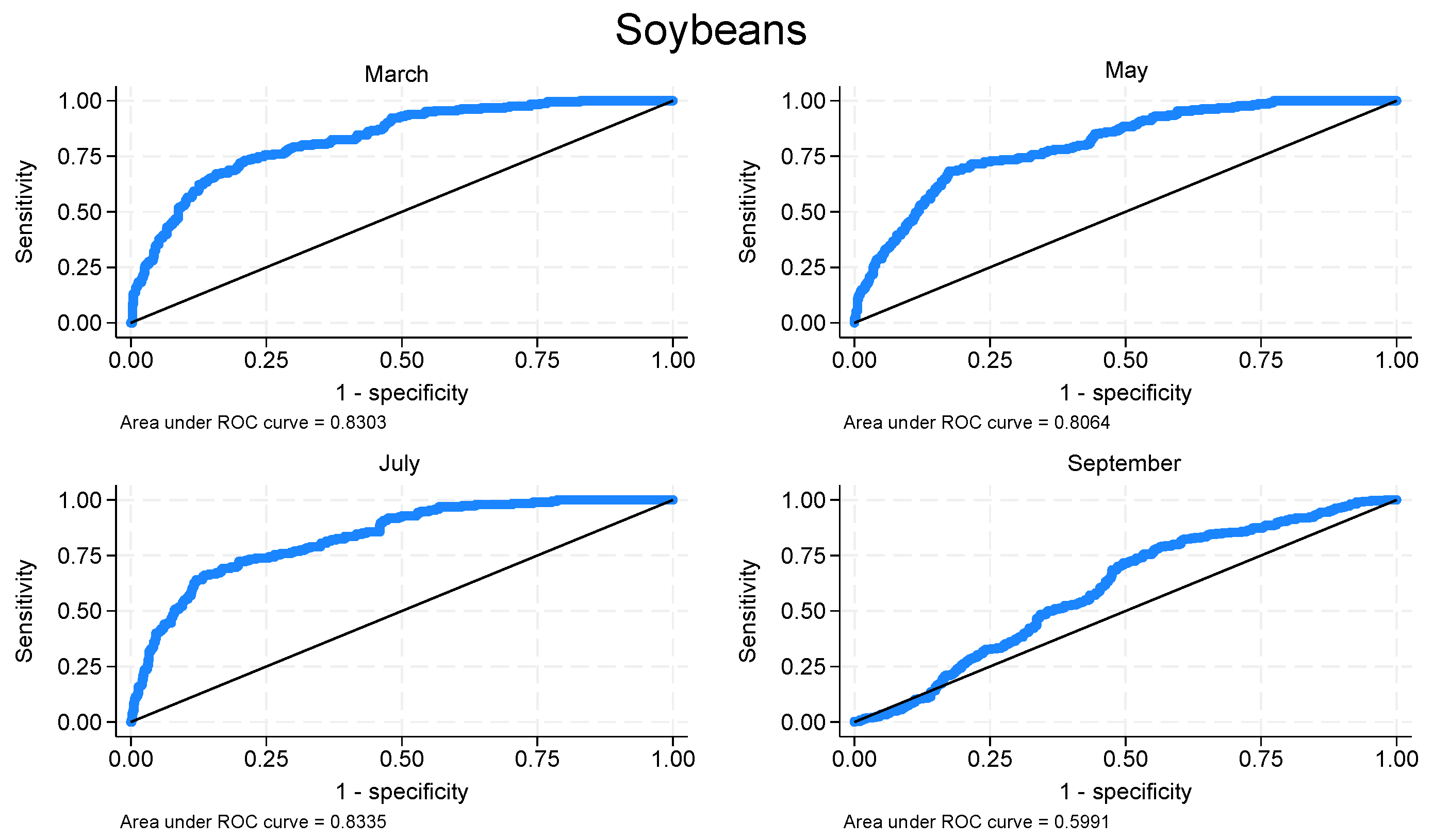 Soybeans—Area under the ROC curve. Source: Authors’ elaboration from BarChart database.