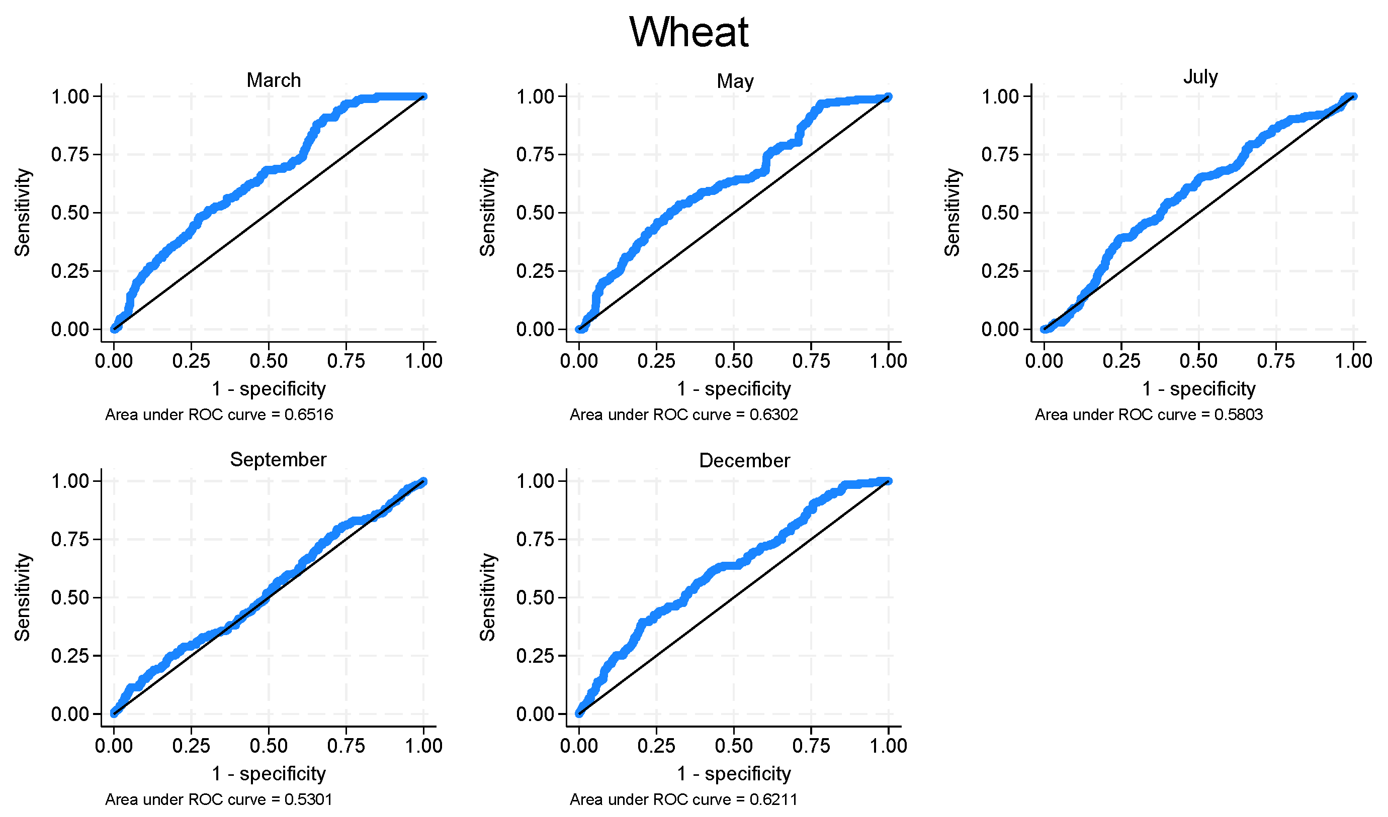 Wheat—Area under the ROC curve. Source: Authors’ elaboration from BarChart database.
