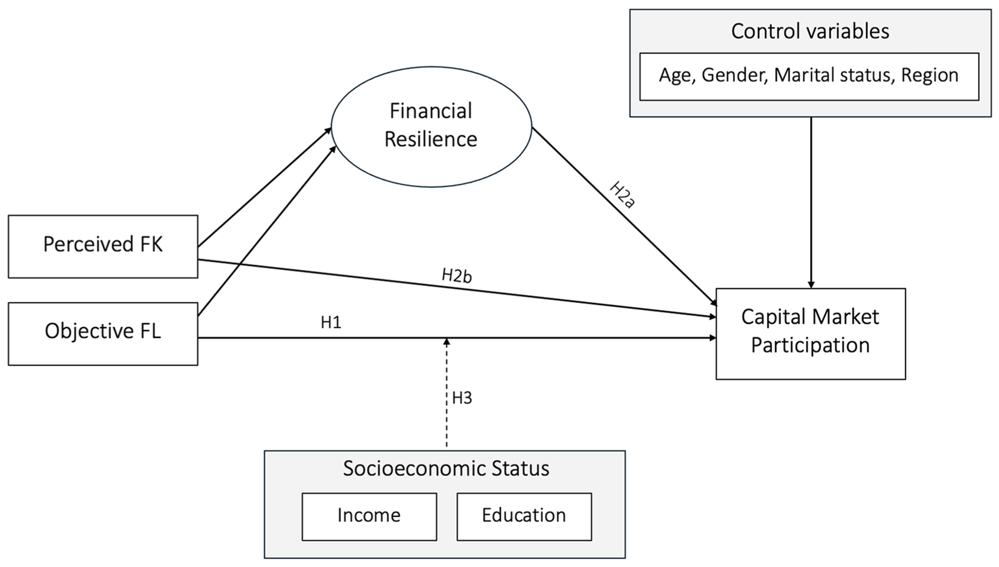 H2a. Financial resilience mediates (i.e., strengthens) the positive relationship between financial literacy and capital market participation.
