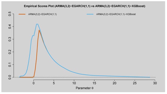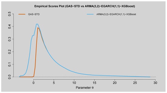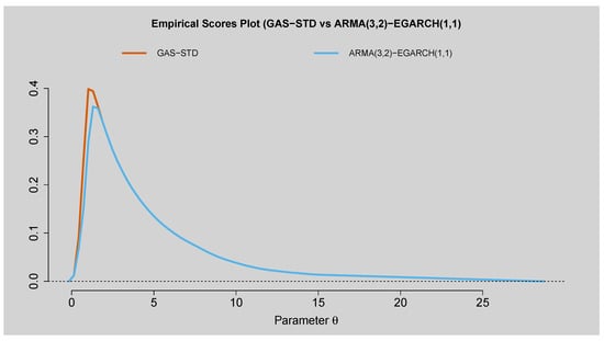 Empirical Scores Plot of GAS–STD vs. ARMA(3,2)–EGARCH(1,1).