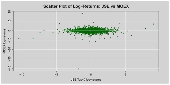 Scatter Plot of Log-Returns: JSE vs. MOEX.