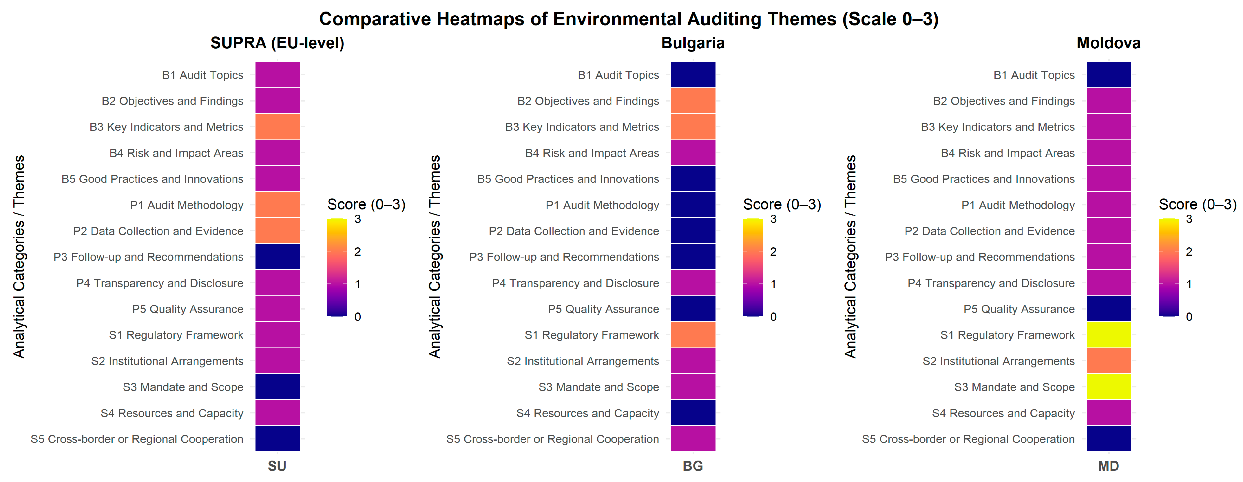 | Transition & capacity in post-socialist contexts | (Atanasova & Naydenov, 2025; OECD & EU4Environment, 2022) | Institutional capacity and supranational anchoring condition audit impact. | Invest in risk-based planning, interoperable registries, and transparency portals. |