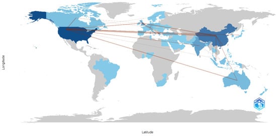 Figure 4 provides a complementary global view of research productivity and collaboration on the topic studied. The United States emerges as the central hub of international co-authorship, with extensive ties across Europe, Asia, and Oceania. China and India also display strong transnational connections, particularly within the Asia-Pacific, while countries such as Australia, Malaysia, and Germany act as regional nodes. By contrast, Africa, South America, and parts of Eastern Europe remain underrepresented, underscoring the need for broader inclusion to strengthen global diversity in ESG-finance research.
