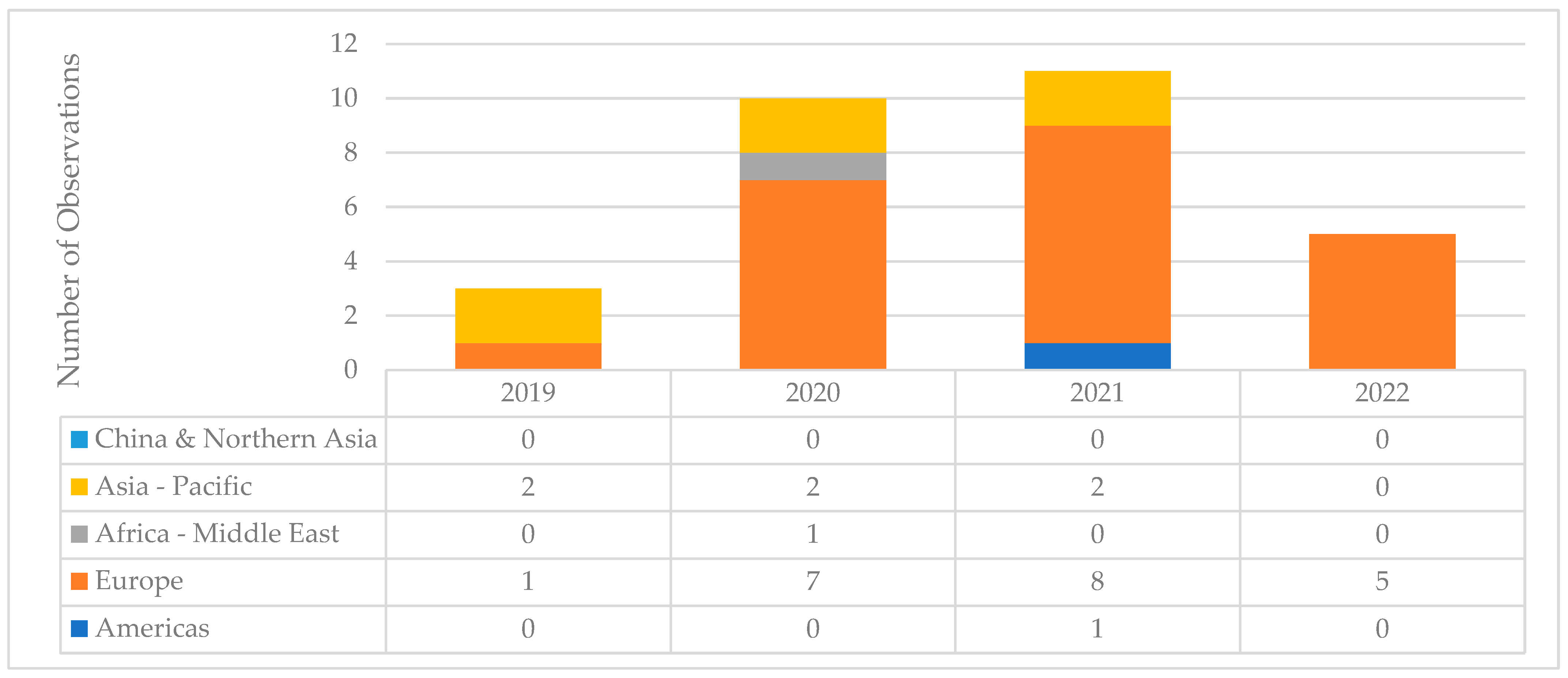 | Region/Year | 2019 | 2020 | 2021 | 2022 |