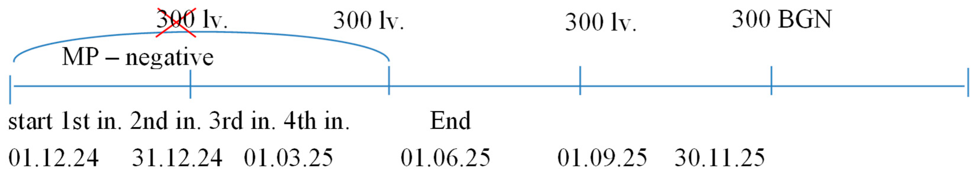 The premium was paid on 25.11 when the insurance was taken out. Despite being paid, the insurance company did not report anything until the first due date of 30.11, as if it had not taken out an insurance policy. The money sits in a checking account. On the 30.11. the 300 BGN of the policy will be transferred from the checking account, and it becomes a POR because the contract has not expired yet. With each passing day after 01.12 (the start of the policy), the measurement of performance (MP) will decrease, and the premium income will increase. On 01.12. the premium income is 0. Only at the end of the day, it will be 1/91 of GBP 300 = BGN 3.29 (because the premium of the policy, which is BGN 1200, is paid in four equal instalments, and the first instalment is BGN 300, and the period to which it applies is 3 months or 91 days).