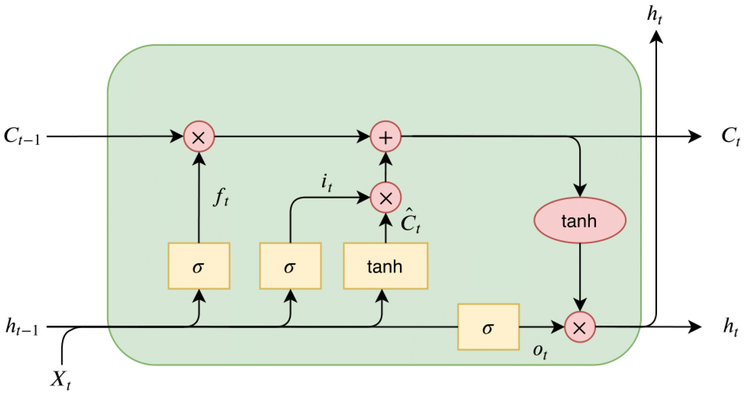 LSTM is a type of RNN, addressing the vanishing gradient problem of conventional RNNs. The architecture of the LSTM cell is displayed in