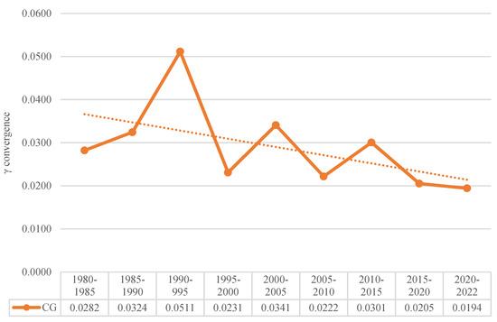 Sectoral γ convergence of LAC countries, 1980–2022. Source: Authors’ design based on Table A2, Table A3 and Table A4 of the Appendix A, using the methodology of Marchante et al. (2008).