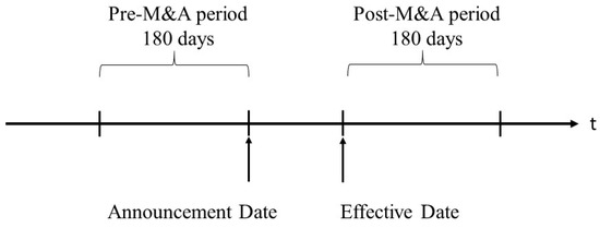 Timeline of a shareholder–lender merger transaction. The pre-merger period is a 180-day window before the merger announcement date, and the post-merger period is a 180-day window after the merger effective date. We compare the information asymmetry and disclosure in the pre-M&A period with these in the post-M&A period. We use bid–ask spread and AIM as proxies for information asymmetry among equity investors. We use the number of quarterly management forecasts (including earnings, sales, capital expenditure, EBITDA, and gross margin) as the proxy for the level of disclosure and the precision of quarterly management earnings forecasts as the proxy for disclosure quality. See Appendix A for detailed variable definitions.
