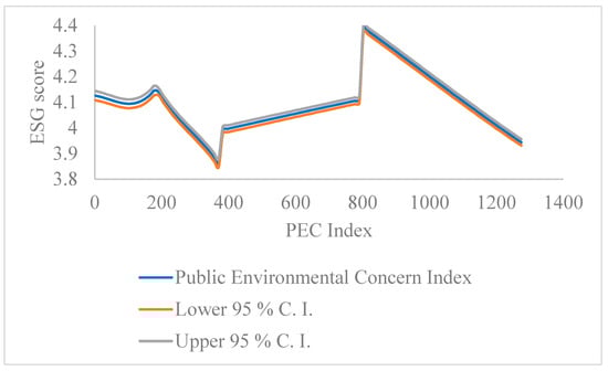 Relationship between the ESG score and the public environmental concern (PEC) index with confidence intervals. Source: authors’ calculations.
