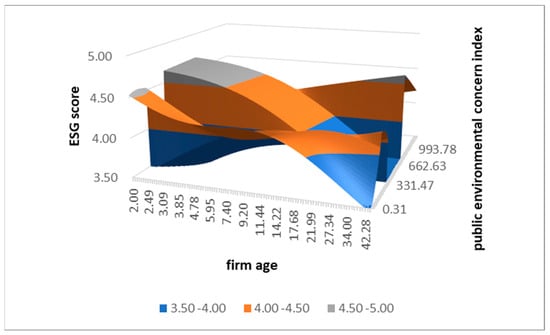 Relationship between the ESG score and the public environmental concern (PEC) index with varying firm age. Source: authors’ calculation.