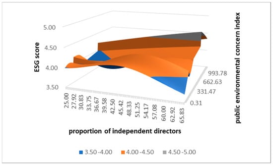 Relationship between the ESG score and the public environmental concern (PEC) index with varying proportions of independent directors. Source: authors’ calculation.