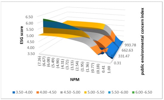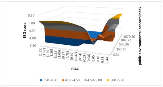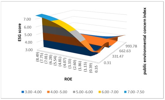 On the other hand, the analysis also reveals that some financial metrics, including return on assets (ROAs), return on equity (ROE), and net profit margin (NPM), significantly influence the interplay between PEC and ESG performance. Instead of observing the cyclical correlation, increasing public attention generally enhances the ESG performance of financially sound firms, while for financially poor firms, a low to moderate level of public concern is suggested for the sake of continuous sustainable growth. Higher profitability metrics are found, in general, to be complementary to better ESG practices.