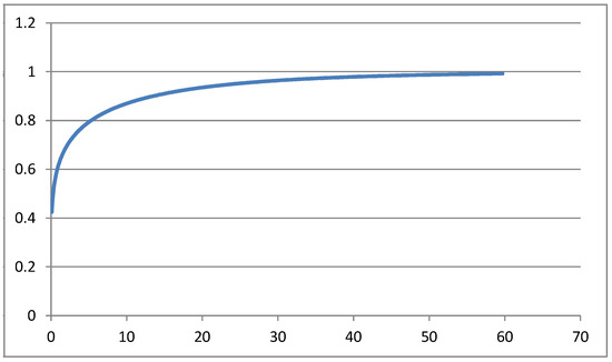 When there are no new external infections, that is, , we obtain, by Formula (15), the dimension . In this case, the disease can be potentially eradicated; see (Revuz & Yor, 1999). To make this specific, let denote the first time t when the number of newly infected individuals hits zero, where the number of newly infected individuals at time is set to . It is then possible to calculate, for the proposed model, the conditional probability . According to (2), we have the return rate (with respect to t-time) given by the formula