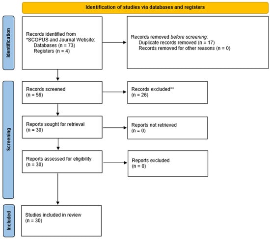 During the eligibility assessment, each full-text article was reviewed to ensure its alignment with the research objectives and methodological requirements. No additional exclusions were made at this stage, as all 30 articles met the predefined criteria. These 30 studies were included in the final systematic review.