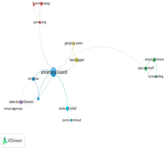 Additionally, co-authorship analysis was performed using VOSviewer 1.6.20, a tool for visualizing collaboration networks. The analysis revealed significant global collaboration in the field, with influential scholars such as Annamaria Lusardi contributing significantly to the discourse. Citation analysis further helped identify leading researchers and publications, contributing to an understanding of the most impactful work in this area.