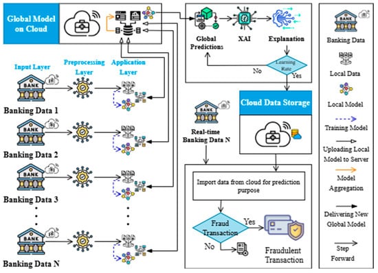 Financial fraud is one of the pervasive problems that affect organizations around the world; rule-based and centralized ML models fail to counter the emergence of new fraud schemes due to high rates of false positives, lack of flexibility, and data privacy violations. Although FL overcomes the issue of sharing datasets through model learning without data sharing, it has drawbacks such as interpretability, communication overhead, and slow convergence time. To overcome these limitations, this research proposes an XFL model, integrating FL with SHAP and LIME-based XAI techniques for transparent, high-accuracy fraud detection (Rehman & Hashim, 2020; Abbas et al., 2024; Saleem et al., 2024; Shahzad et al., 2024). The XFL model ensures privacy, enhances trust, improves real-time fraud detection, and strengthens regulatory compliance, offering a robust and scalable AI-driven financial security solution. As depicted in Figure 3 and Figure 4, the proposed XFL model progresses from data acquisition and preprocessing to local model training and validation, and finally to a federated fraud detection framework, ensuring privacy, interpretability, and scalability in combating financial fraud.