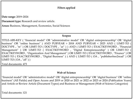 The initial search was conducted in Scopus and Web of Science resulting in a total of 594 articles, then a time horizon was established for the study between 2019 and 2024 to capture the most recent and relevant publications on administrative and financial management models in digital ventures given their relevance since 2019. Consequently, articles that did not meet the criteria of availability, domain area, year range and document type were excluded, resulting in a total of 354 articles. Figure 2 illustrates the refinement process that was carried out with the PRISMA method.