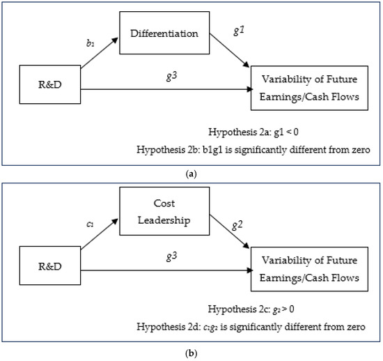 Similarly, firms pursuing a cost leadership strategy need significant investments in production and/or distribution (Kennedy, 2020). Improved financial performance from following a cost leadership strategy in the current year fades over time, and cost leadership does not facilitate firms to maintain future performance as effectively as the differentiation strategy. Therefore, we posit that cost leadership strategies increase the variability of a firm’s future earnings and cash flows. In addition, the relation between R&D expenditures and earnings variability (or cash flow variability) is mediated by firm strategy. Formally stated: