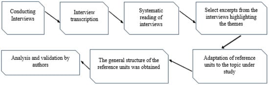 After the interviews, the recordings were listened to and transcribed using Microsoft Word. After transcription, a systematic and exhaustive reading was carried out to select the most relevant and appropriate excerpts for the purposes of the study. The reference units were coded to structure the data, which were later analyzed and validated.