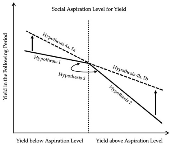 The behavioral response to outperformance can be understood through two distinct theoretical logics. The classic behavioral perspective suggests that firms outperforming their aspirations tend to engage in satisficing, exhibiting inertia and avoiding changes to their successful strategies (Greve, 1998; Simon, 1955). From this viewpoint, one might expect no significant change in yield after outperformance.