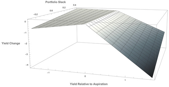 Three-dimensional plot depicting interaction between portfolio slack and yield relative to aspiration.