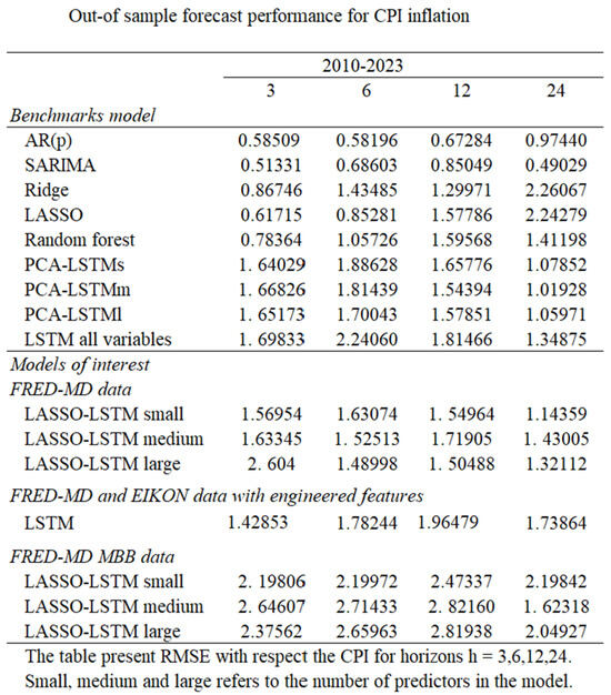 - Almosova, A., & Andresen, N. (2023). Nonlinear inflation forecasting with recurrent neural networks. Journal of Forecasting, 42(2), 240–259. [Google Scholar] [CrossRef]