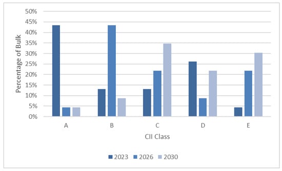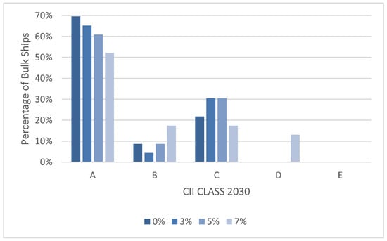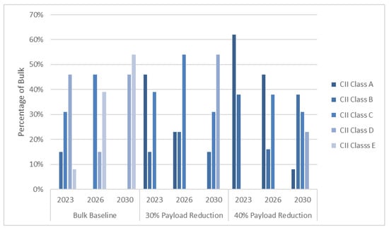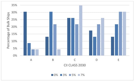 Figure 2. Bulkers’ CII class for the years 2023, 2026, and 2030.
