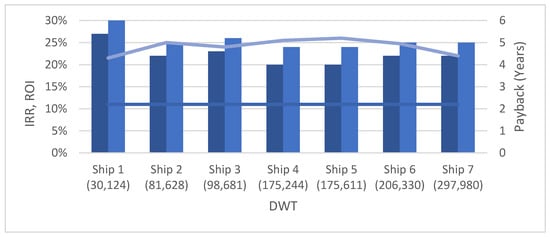 11. CSIMARKET. (2025). Marine transportation industry return on investment statistics. Available online: https://csimarket.com/Industry/industry_ManagementEffectiveness.php?ind=1105 (accessed on 14 February 2025).