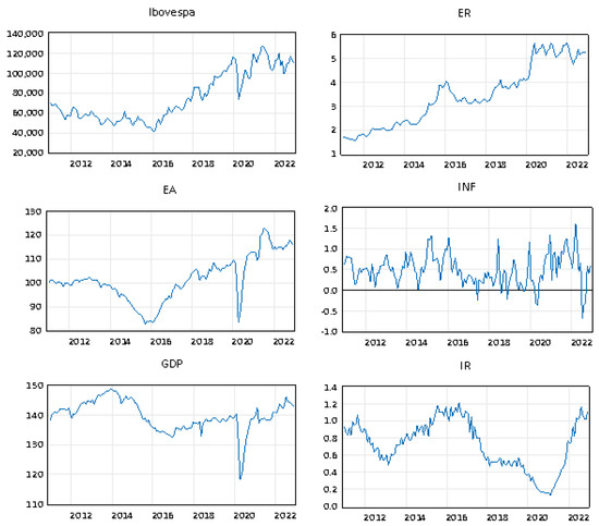 - IBOVESPA: The Brazilian stock index (IBOVESPA) was represented in the model by the variable (IBOVESPA) and its series were extracted from the Economática platform.