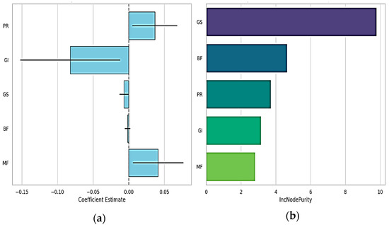 Table 7b. Higher values indicate a greater influence on the accuracy of the model. This measure shows how much each variable contributes to lowering the prediction error (impurity) in the regression trees.