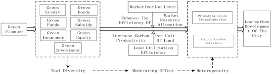 Different green financial instruments vary in their operational mechanisms and resource allocation pathways, leading to divergent impacts on urban low-carbon transition. Green credit incentivizes corporate transformation through financing constraints, green investment accelerates the adoption of low-carbon technologies via capital injection, green insurance reduces project uncertainty with risk guarantees, while green bonds and funds aggregate social capital to broaden financing channels. Green support and equity, on the other hand, contribute to building a low-carbon ecosystem through policy coordination and incentive mechanisms.