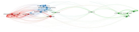 The green cluster, on the right, encompasses publications with quantitative foundations. Prominent ones include, e.g., The Review of Financial Studies balances theoretical and empirical contributions at the finance–economics interface, while Energy Economy specializes in energy markets and financial modeling. These journals provide advanced theoretical frameworks that strengthen financial research through analytical discussions of financial theory and specialized applications (Goldstein et al., 2019).