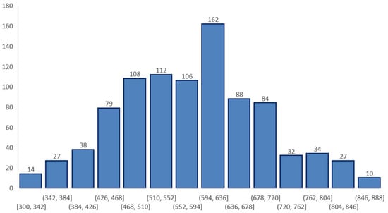 After the above, as a result of the prediction of the test subset, the probability of obtaining a 0 class was modified into score points, which could be in the range of 300–850. The modification is carried out according to the following formula: