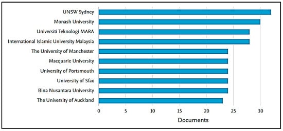 Figure 5 shows the various university institutions to which the researchers belong. It is noteworthy that 32 studies were carried out at UNSW Sydney, followed by Monash University with 30 studies. Finally, both University Technologic MARA and International Islamic University Malaysia produced 28 studies, respectively. With respect to the other institutions, they represent the minority in terms of academic production. In this sense, it is necessary to put Ugalde Herrera (2023) in context in order to give prominence to the auditor among all these investigations published by these universities, when the researcher states that the auditor must remain in his role as passionate about his profession, always trying to remain in ethical contexts, so that in the environment in which he moves, the offer of bribes is very recurrent to avoid evidencing financial fraud. Their focus should be on the evaluation and detection of risks and promote commitments to prevention plans.