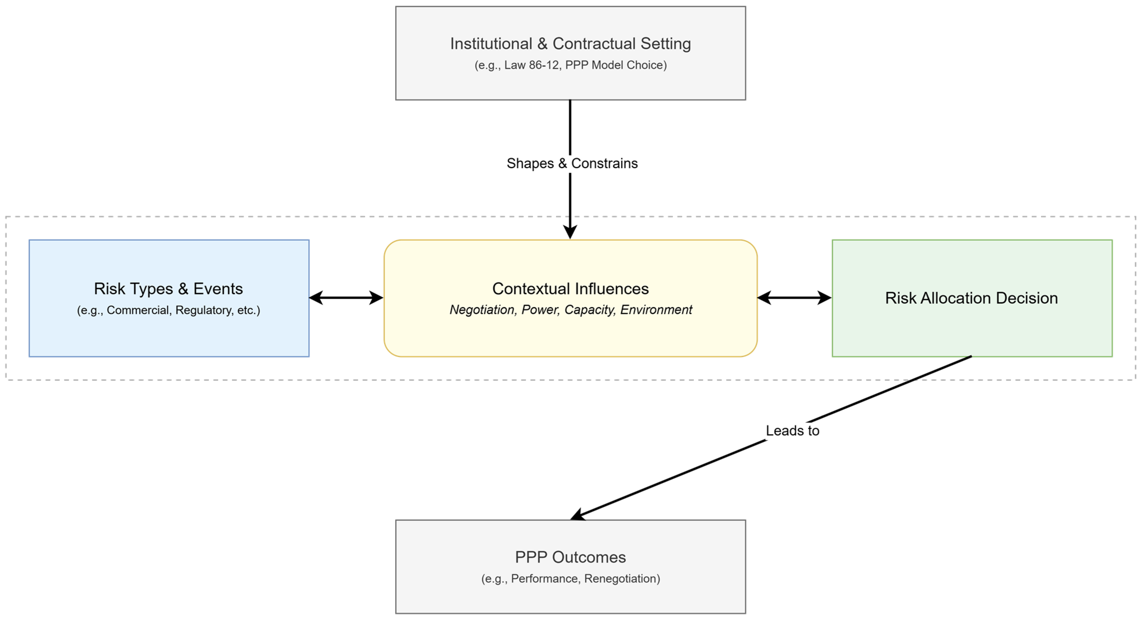 Z. Liu et al., 2025). These works emphasise information asymmetry, moral hazard, incentive alignment, and monitoring systems. They foreground the centrality of contract design and institutional mechanisms in shaping risk-sharing outcomes. Their key contribution lies in shifting risk allocation discussions from “who should bear what” toward “how contracts, institutions, and governance processes shape the feasibility of risk transfer.” Yet, a critical gap remains that many of these studies abstract away from on-the-ground negotiation dynamics and ignore how administrative capacity, political cycles, and corruption risks affect contractual performance over time.