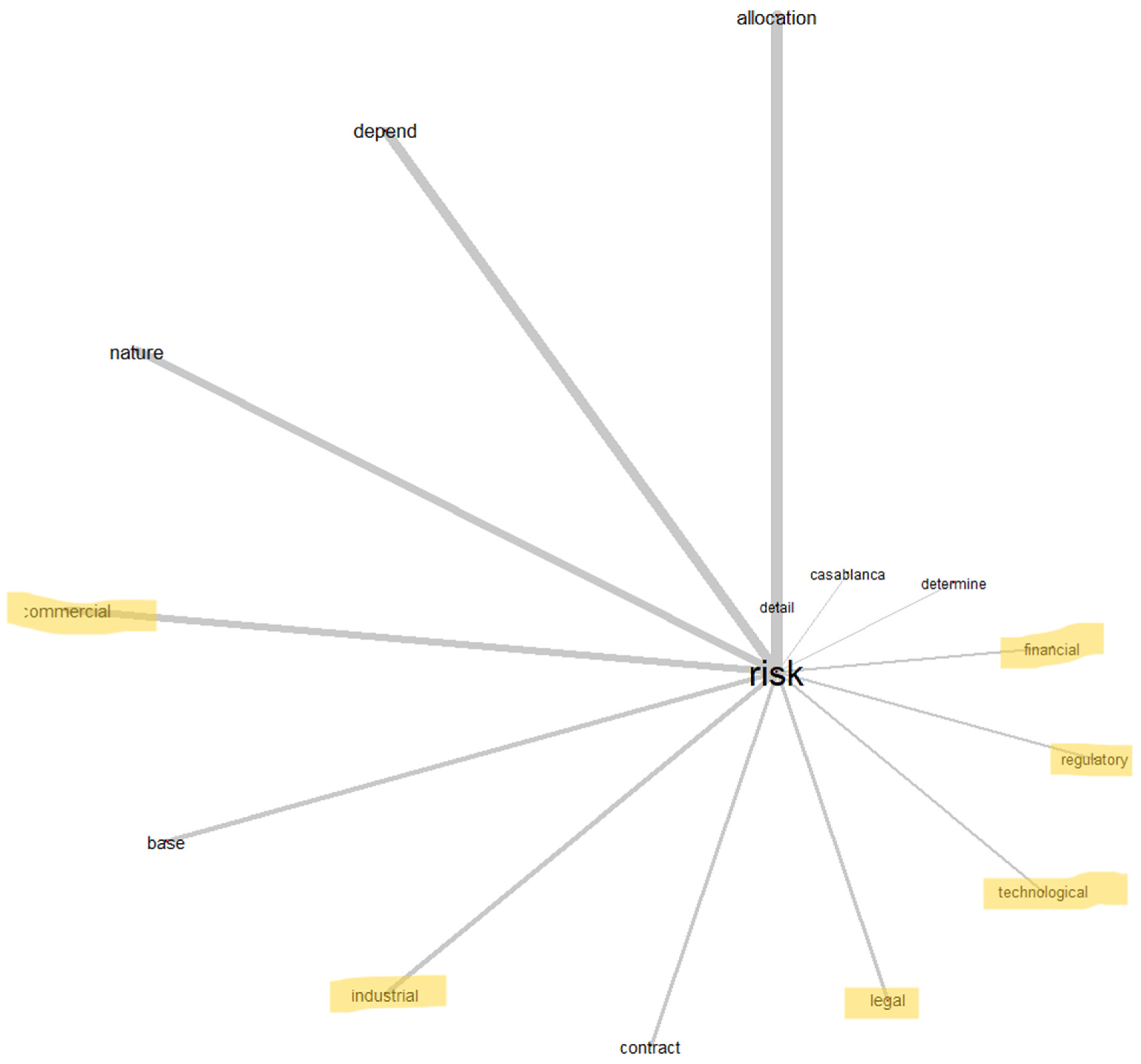 Appendix B.1), six risks were identified. Commercial, industrial, legal, technological, regulatory, and financial. By manually reading the corpus and codifying the script. We have identified three more risks: cost overrun risk, delay overrun risk, and political risk.