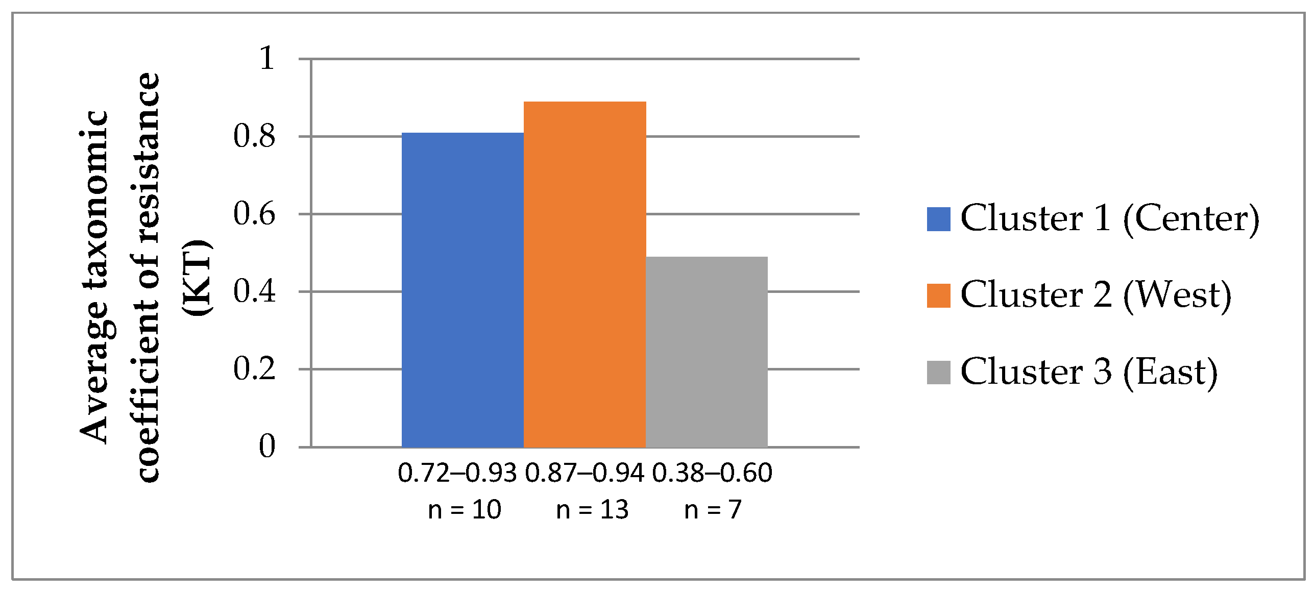 | Taxonomic Method | Python 3.10 | Min–max normalization; Euclidean distance | Benchmark vector stability check | KT coefficient range: 0.38–0.94 |