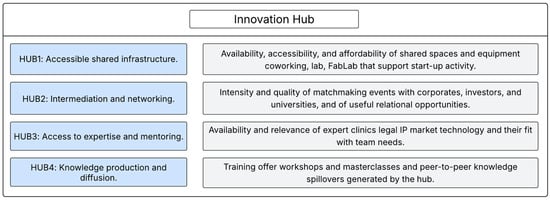The recent literature defines the innovation hub as a meso-level intermediary that orchestrates knowledge flows, densifies networks and coordinates support arrangements. It brings together physical spaces and digital platforms where institutions, ideas and actors converge to enable open collaboration and the exploitation of knowledge beyond organizational boundaries, which differentiates it from a mere hosting or coworking logic (Chou et al., 2024; Schnell & Berger, 2025).