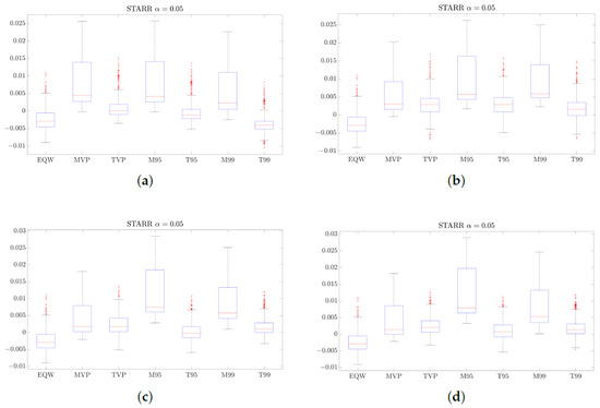 Figure A5. Boxplots of STARR ratios (95% and 99%) for the 29 individual Asian ETFs. (a) STARR 95%. (b) STARR 99%.