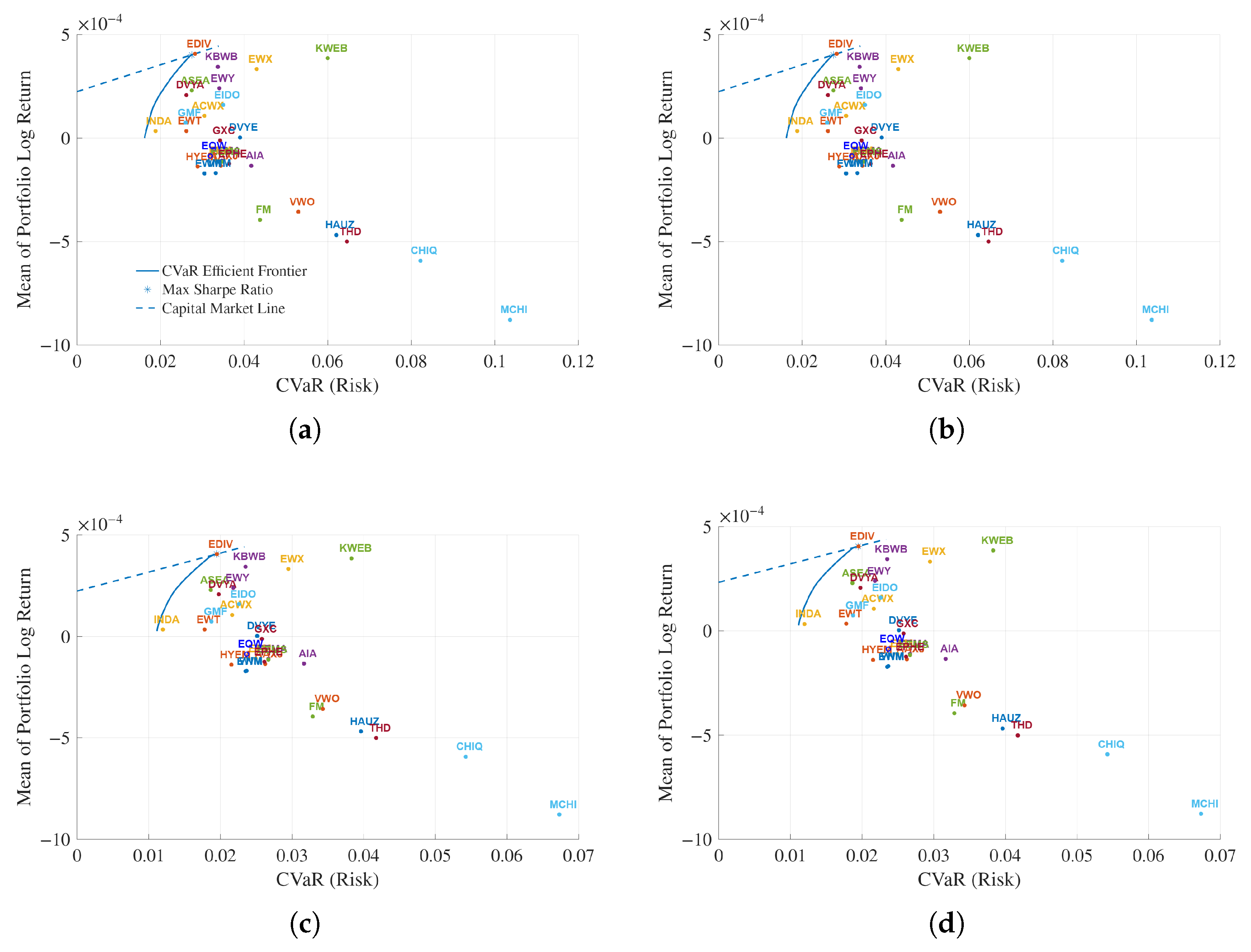4.1. Markowitz and CVaR Efficient Frontier Results