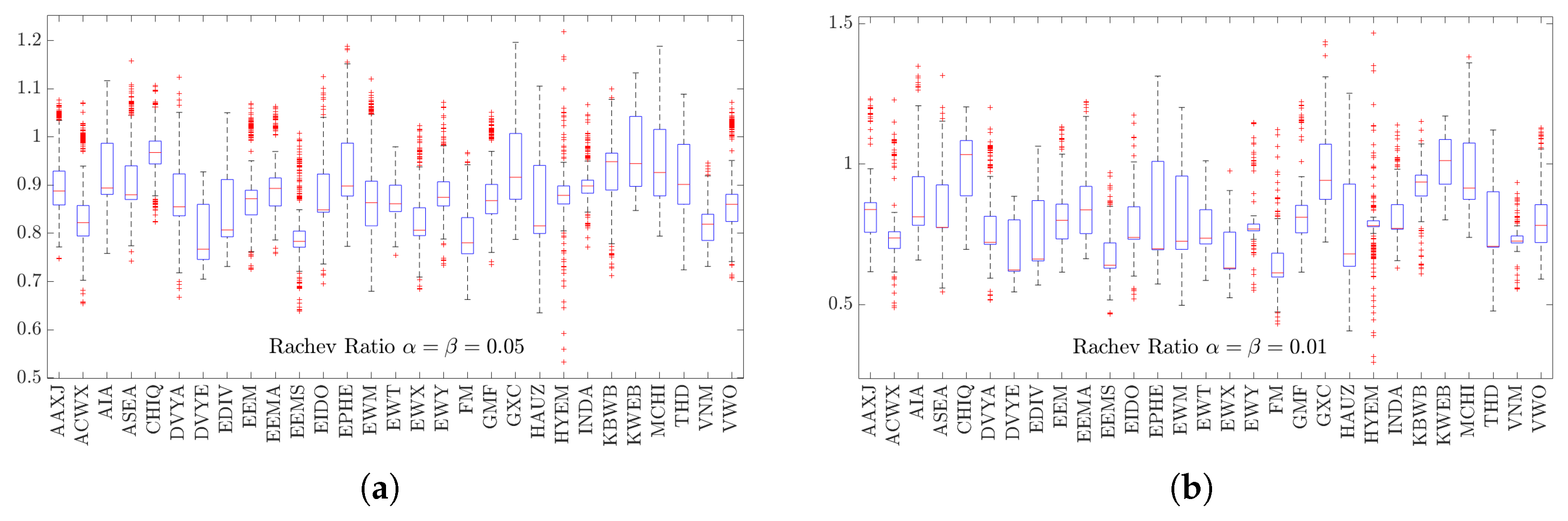 4.3.2. Rachev Ratio Evidence (Tail Asymmetry)