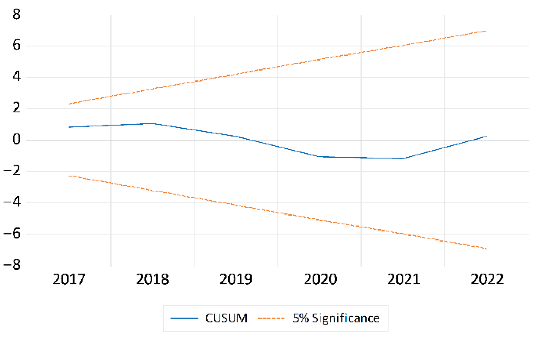 3.3.4. Autoregressive Distributed Lag (ARDL) Bounds Test